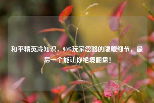 你以为自己是和平精英的“老油条”?其实游戏里藏着不少连王牌玩家都未必知道的冷知识!今天就来揭秘6个实用又有趣的细节,最后一个关键时刻能救命——