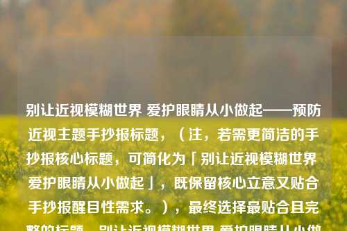 眼睛的健康需要我们长期的呵护,别让近视模糊了我们看世界的目光,也别让忙碌的生活忽略了这扇“窗户”的保养,从今天起,让我们养成良好的用眼习惯,多给眼睛一些休息的时间,多去户外感受自然的光——因为只有拥有健康的眼睛,才能看见更清晰、更美好的世界。