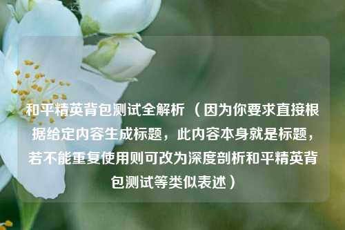在和平精英这款热门游戏中,背包对于玩家来说至关重要,它直接影响着玩家的物资携带量和战斗续航能力,那么如何对和平精英的背包进行测试呢?